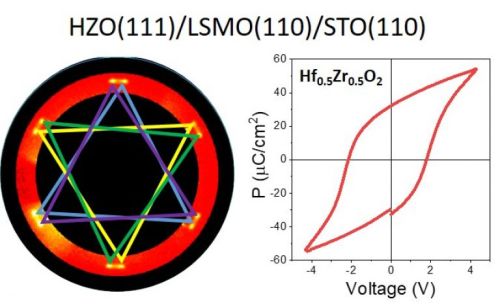 The remanent polarization of HZO films with a thickness of less than 7 nm on LSMO/STO(110) is 33 μC cm−3, which corresponds to a 50% improvement over equivalent films on LSMO/STO(001). Furthermore, HZO on LSMO/STO(110) presents higher endurance, switchable polarization is still observed up to 4 × 1010 cycles, and retention of more than 10 years. These results demonstrate that tuning the epitaxial growth of ferroelectric HfO2, here using STO(110) substrates, allows the improvement of functional properties of relevance for memory applications.
